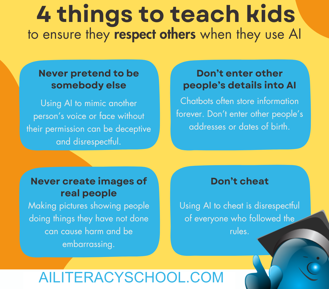 Here are four essential things to teach kids to ensure they respect others when using AI:
